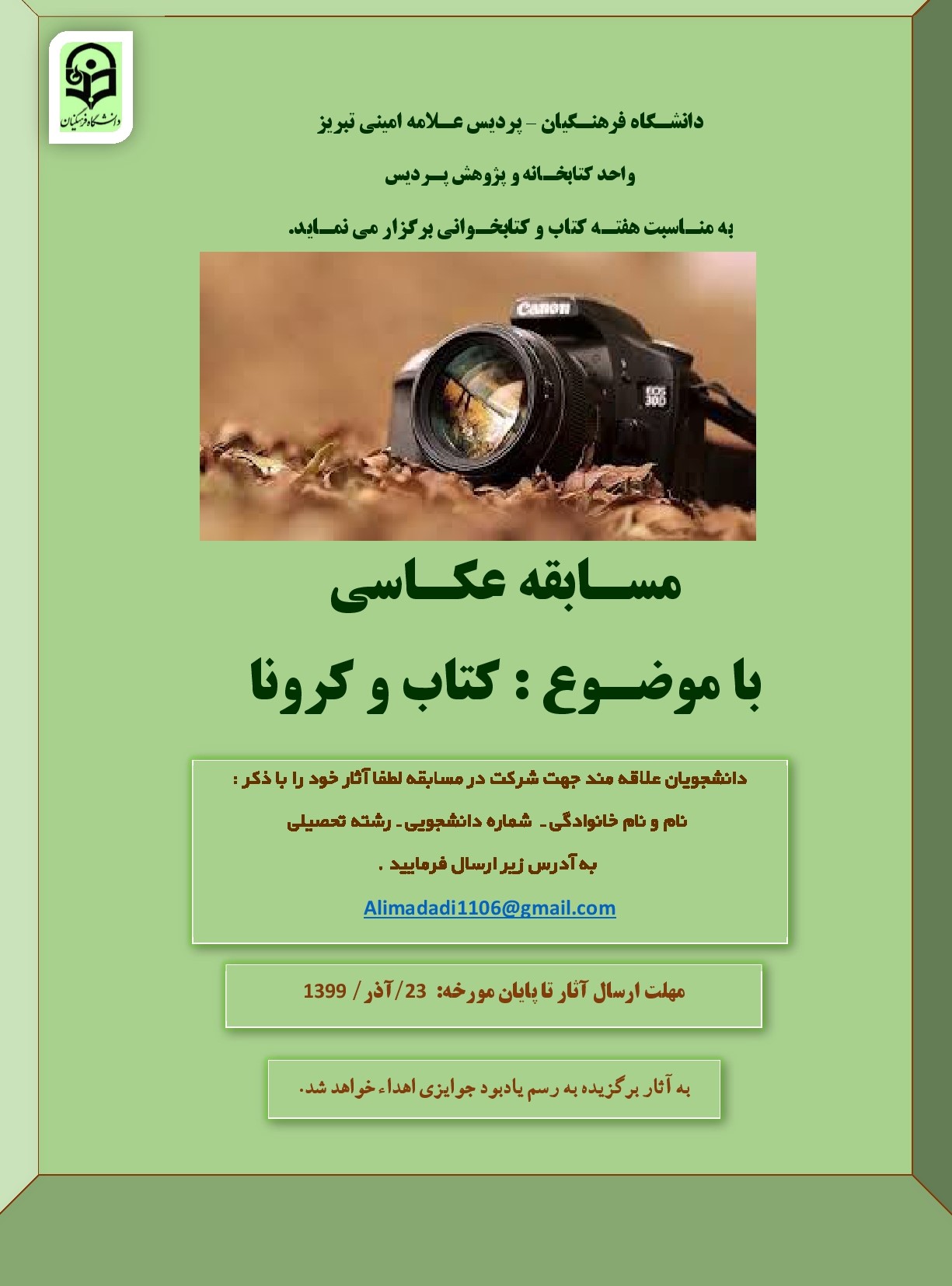 واحد کتابخانه و پژوهش پردیس علامه امینی تبریز برگزار می نماید.
