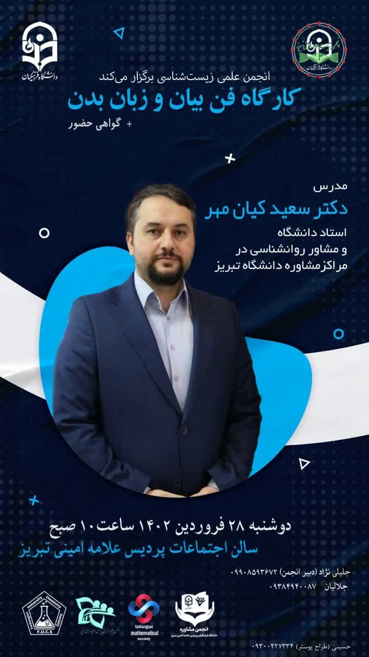 "کارگاه فن بیان و زبان بدن" در تاریخ ۲۸ فروردین ۱۴۰۲، با تلاش انجمن علمی زیست شناسی در سالن اجتماعات برگزار گردید.