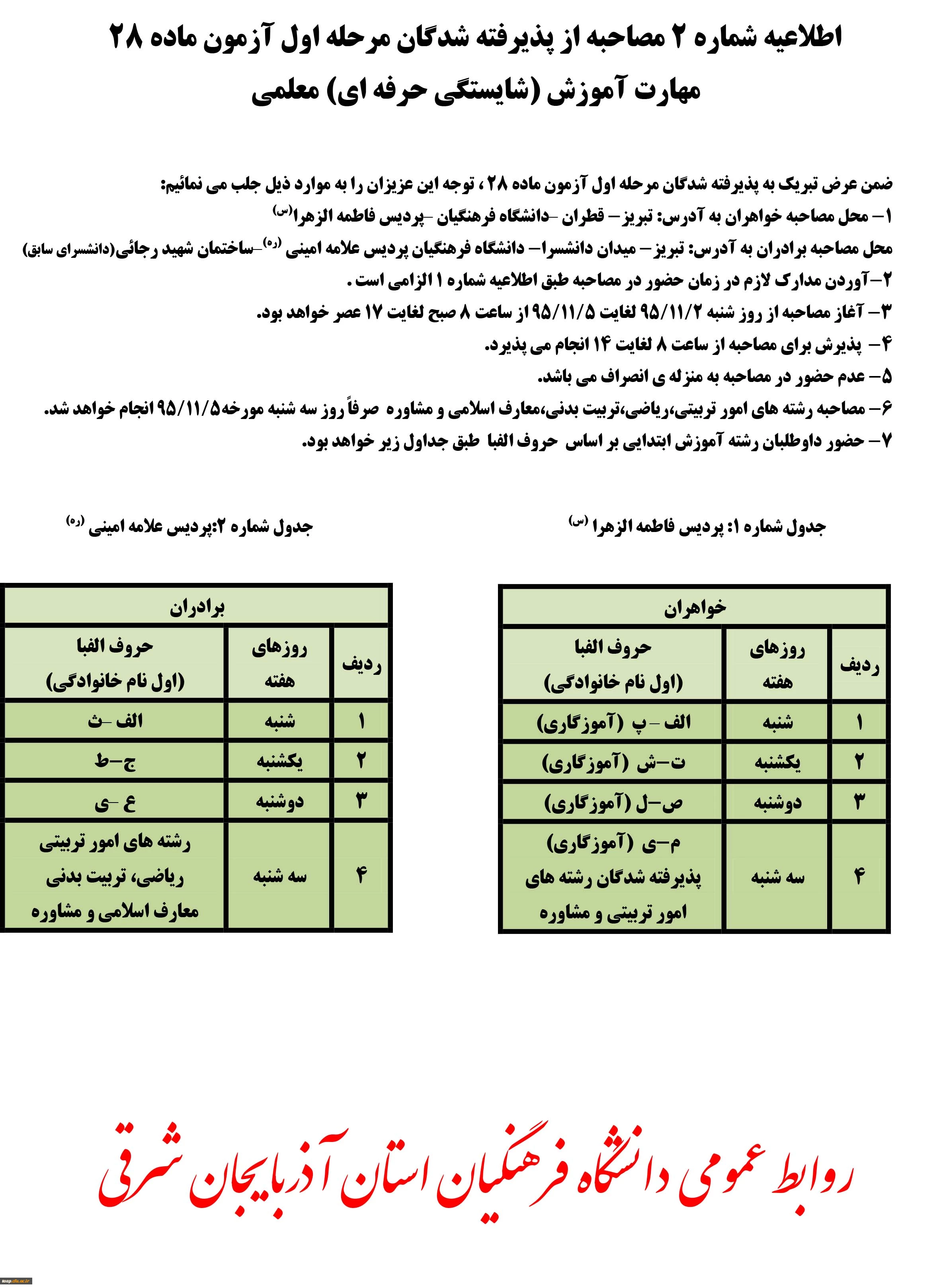 امتیاز دهید : اطلاعیه شماره 2 مصاحبه از پذیرفته شدگان مرحله اول آزمون ماده 28 سهشنبه 28 دی 1395 ساعت 18:04
