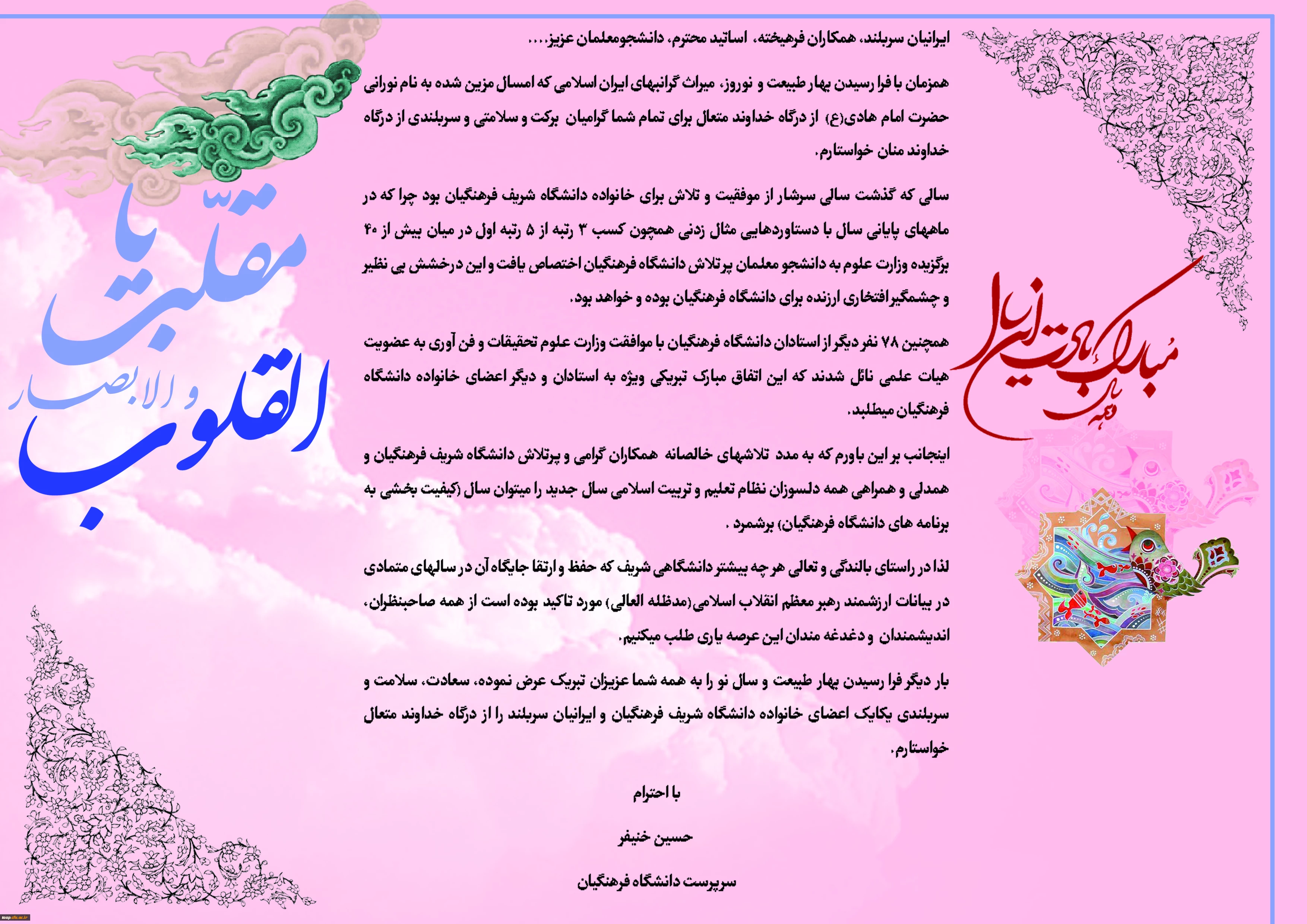 سرپرست دانشگاه فرهنگیان در پیام آغاز سال نو