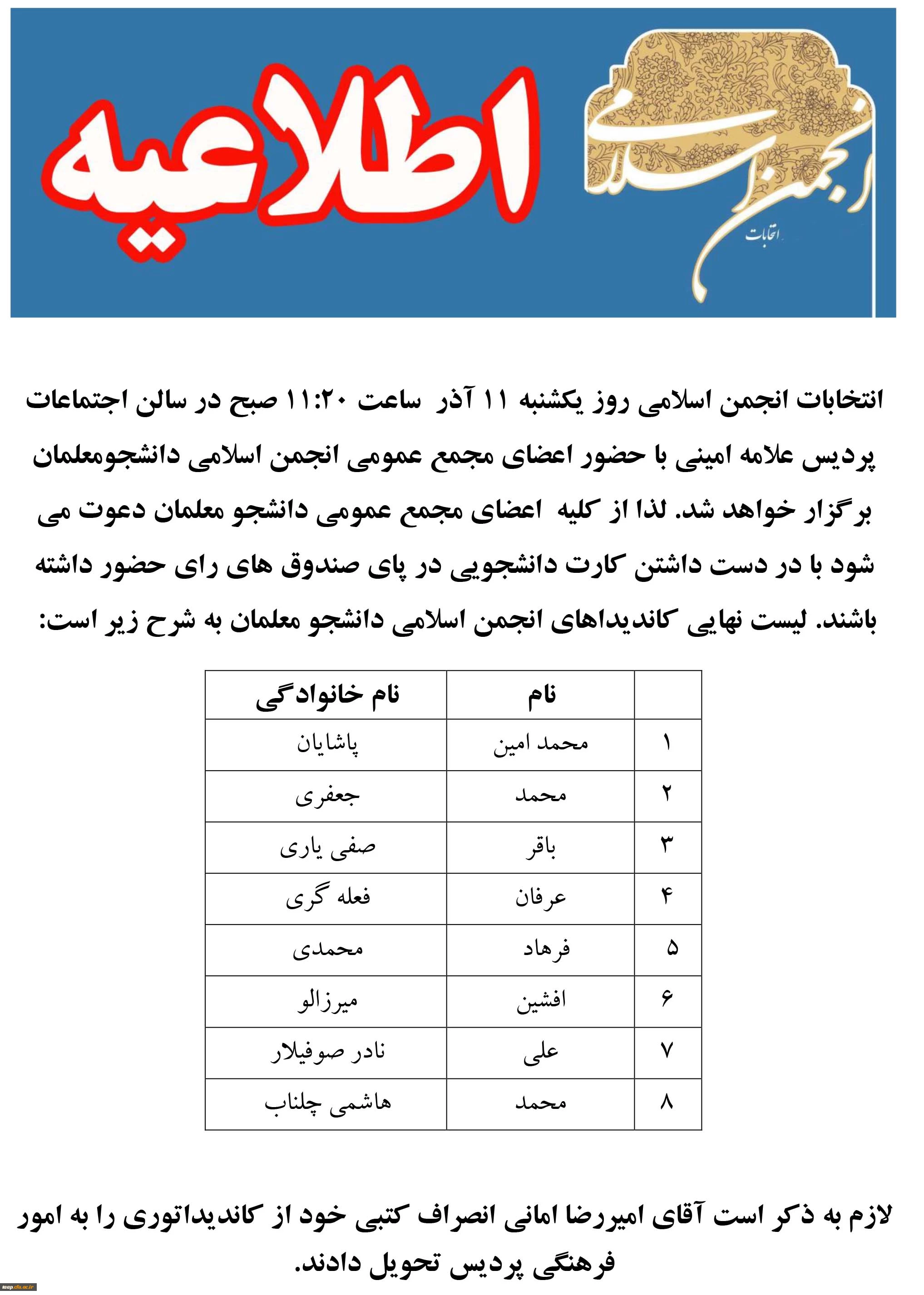 اطلاعیه شماره2 انتخابات انجمن اسلامی دانشجو معلمان