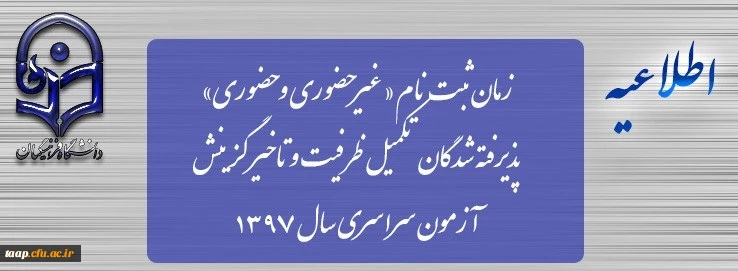 زمان ثبت نام « غیرحضوری و حضوری» پذیرفته شدگان تکمیل ظرفیت و تاخیر گزینش آزمون سراسری سال 1397