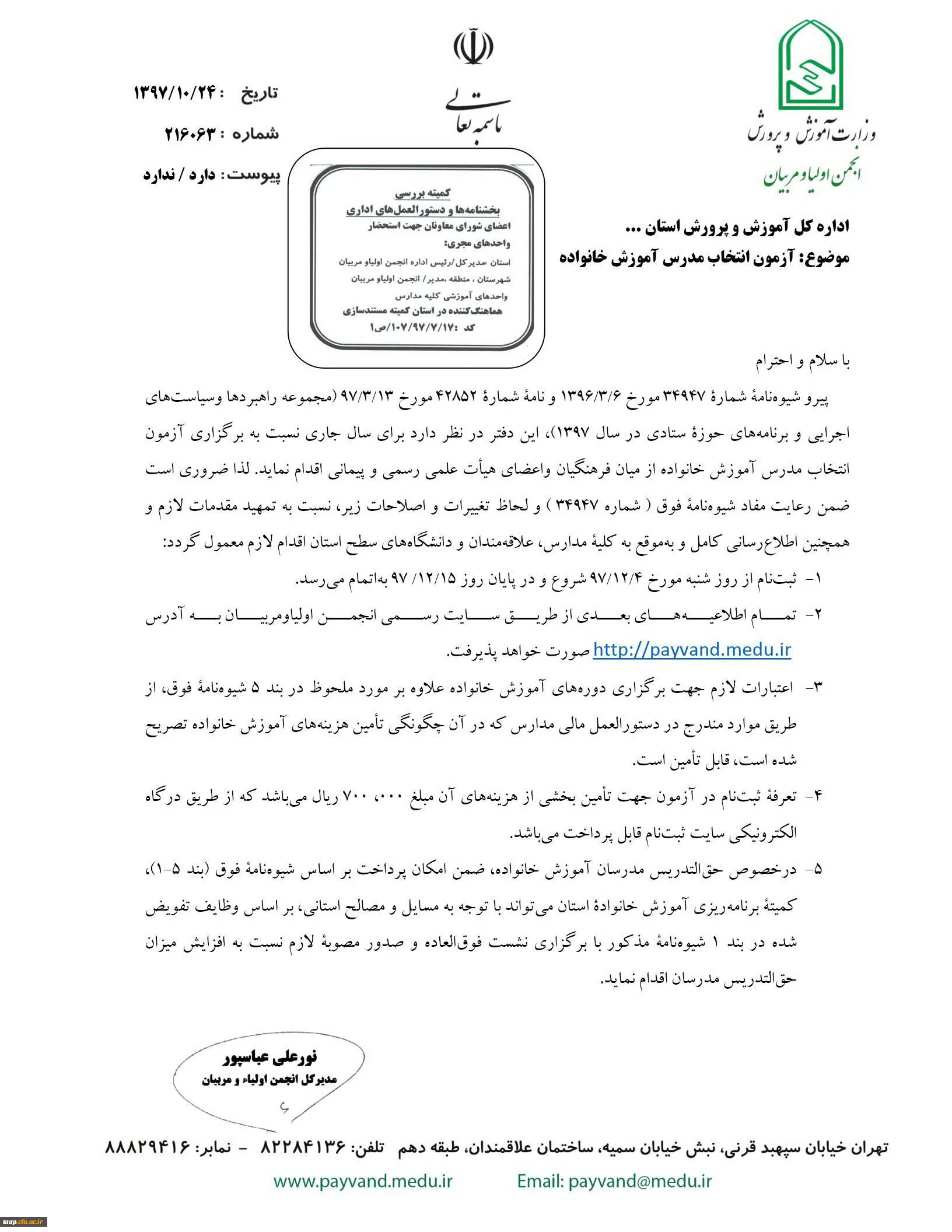 اطلاعیه برگزاری آزمون انتخاب مدرس آموزش خانواده