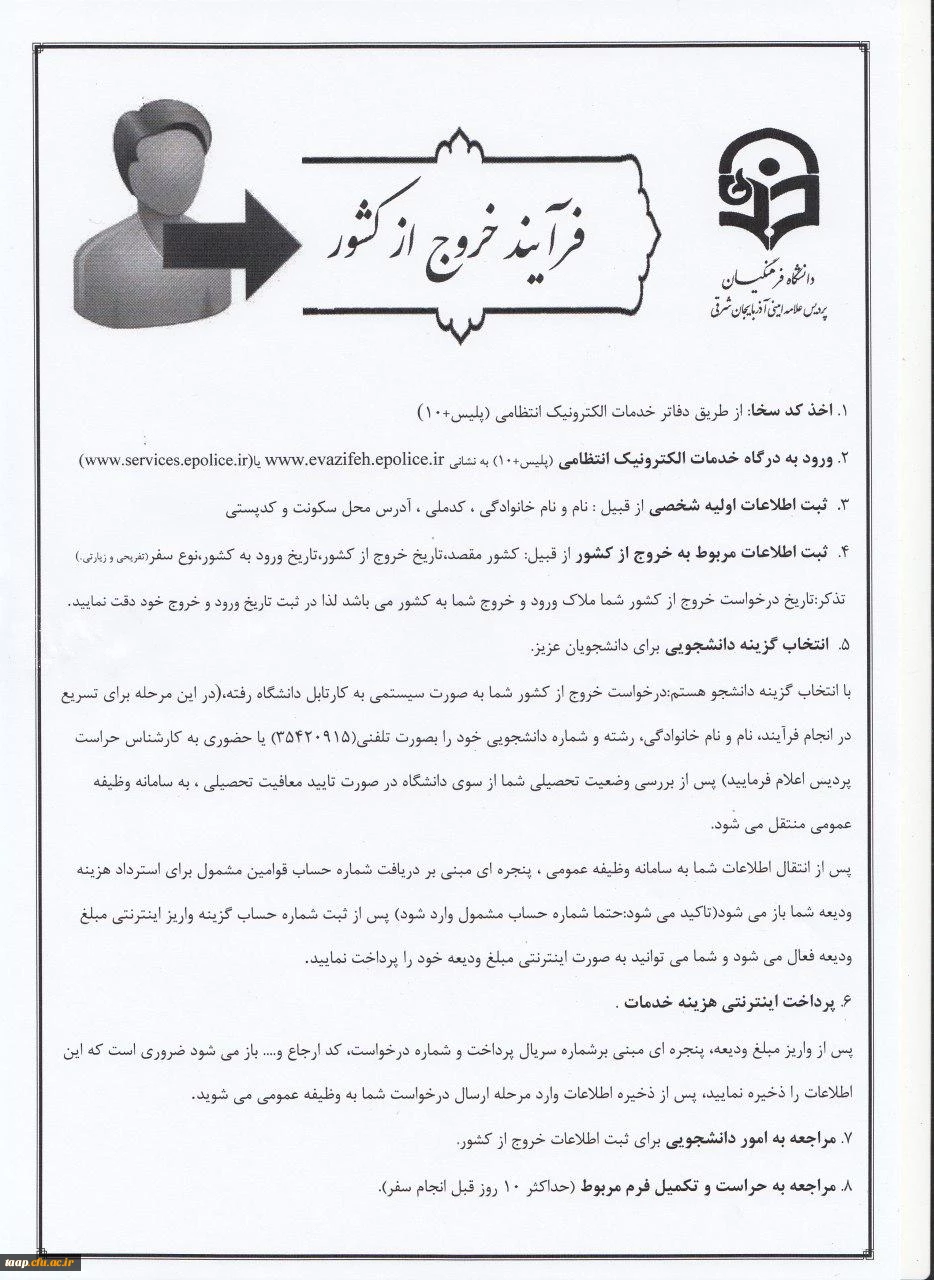 امتیاز دهید : ( فرآیند اخد مجوز خروج از کشور دانشجومعلمان پسر دانشگاه فرهنگیان ) سهشنبه 18 تیر 1398 ساعت 15:08