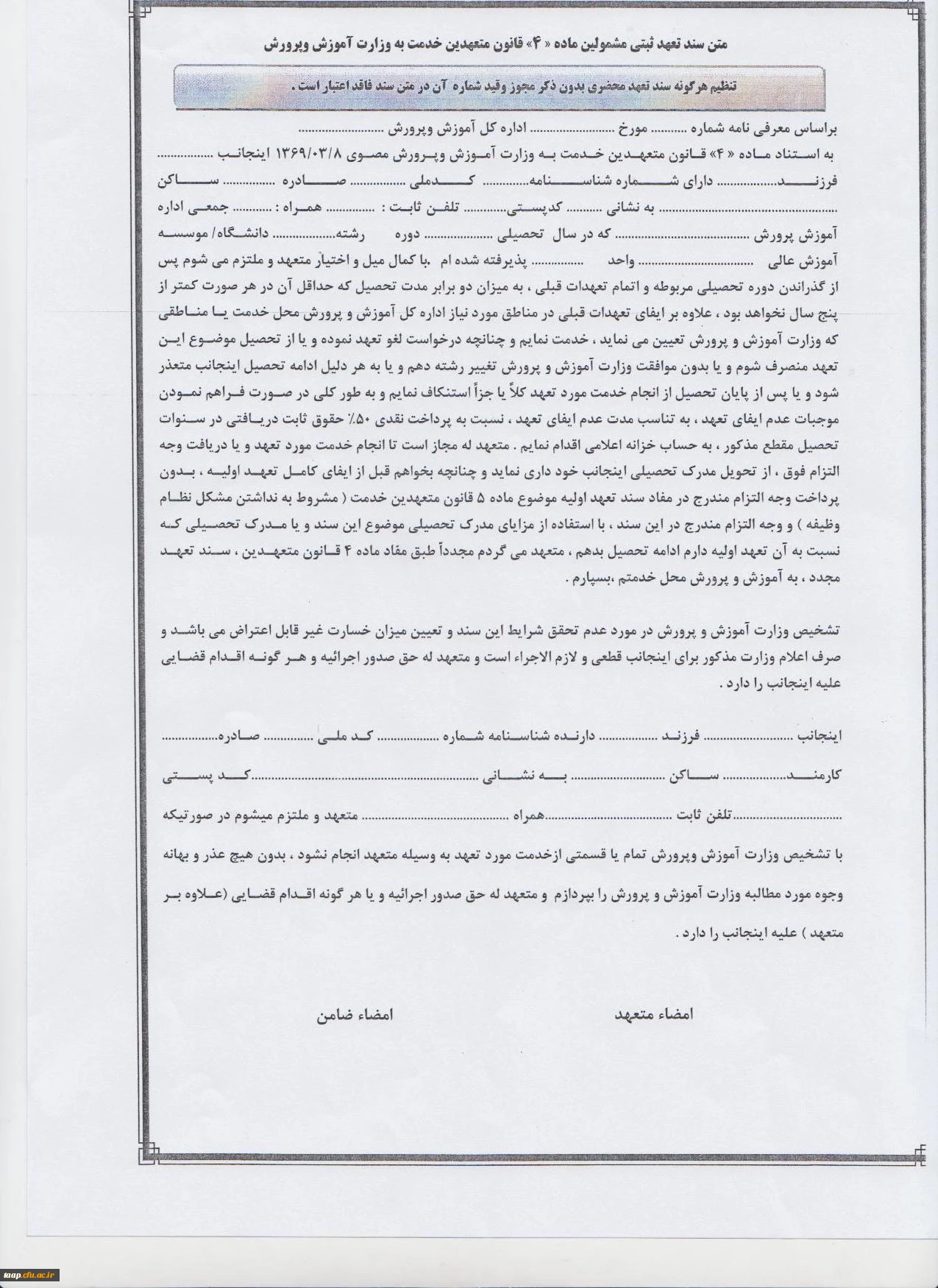 فرم تعهد محضری
