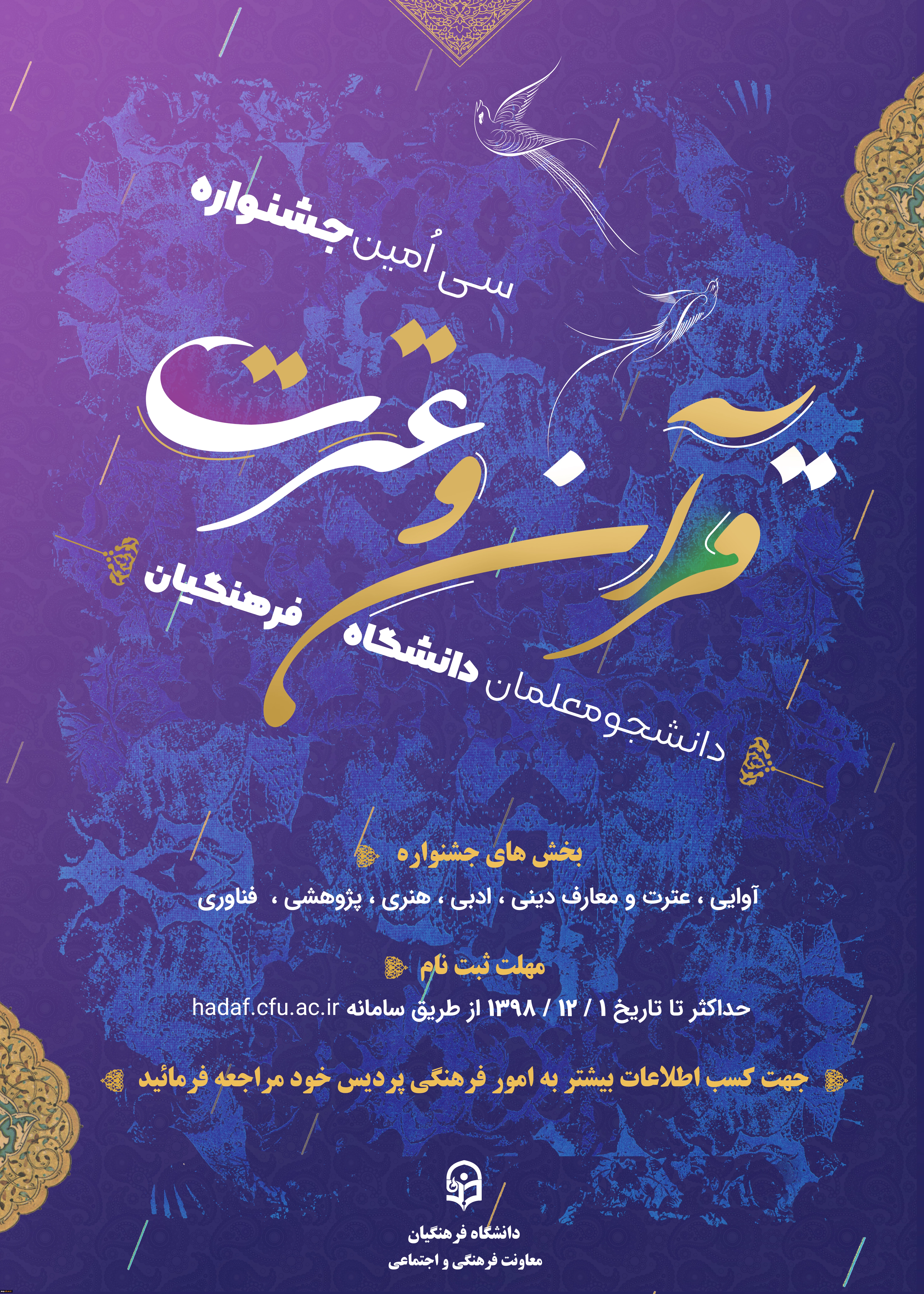 ثبت نام در سی امین چشنواره قرآن و عترت دانشجویی در سامانه هدف(دانشگاه فرهنگیان) 2
