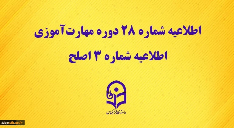امتیاز دهید : اطلاعیه شماره 28 دوره مهارت آموزی، اطلاعیه شماره 3 اصلح 2 چهارشنبه 19 آذر 1399 ساعت 7:30