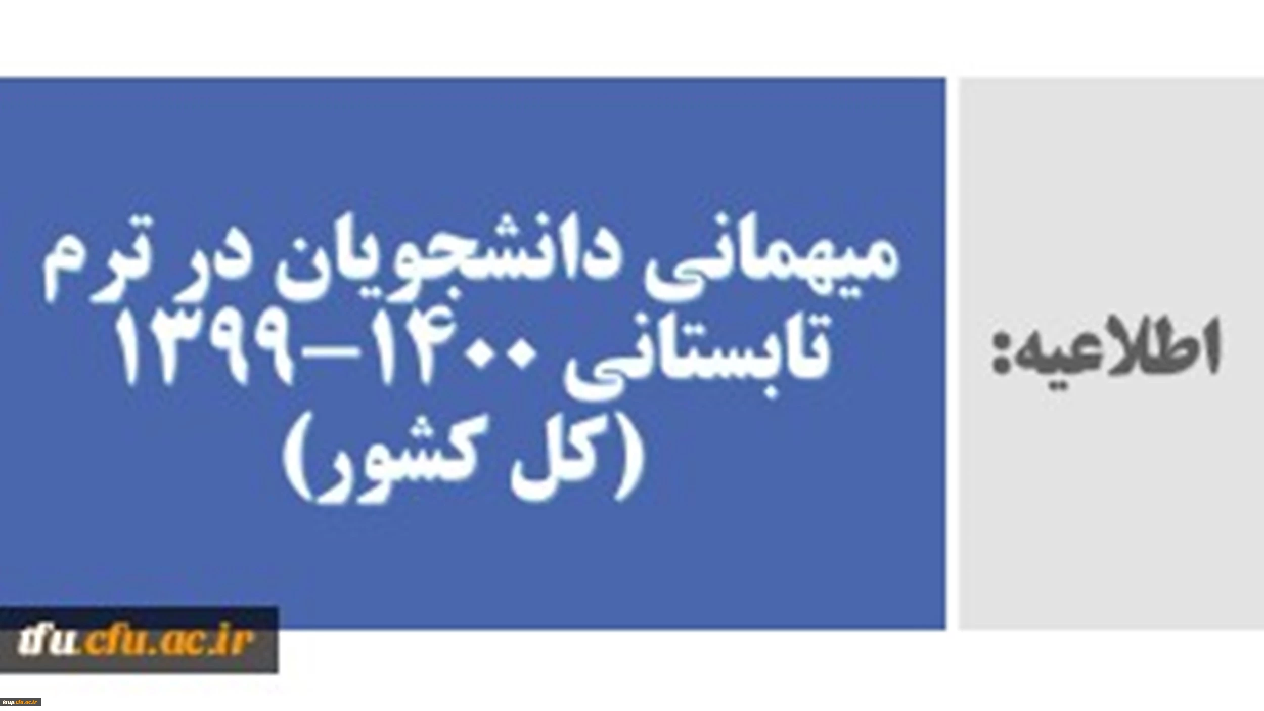 امتیاز دهید : میهمانی و انتقال دانشجویان در ترم تابستانی 1400-1399 (کل کشور) 2 سهشنبه 25 خرداد 1400 ساعت 14:13