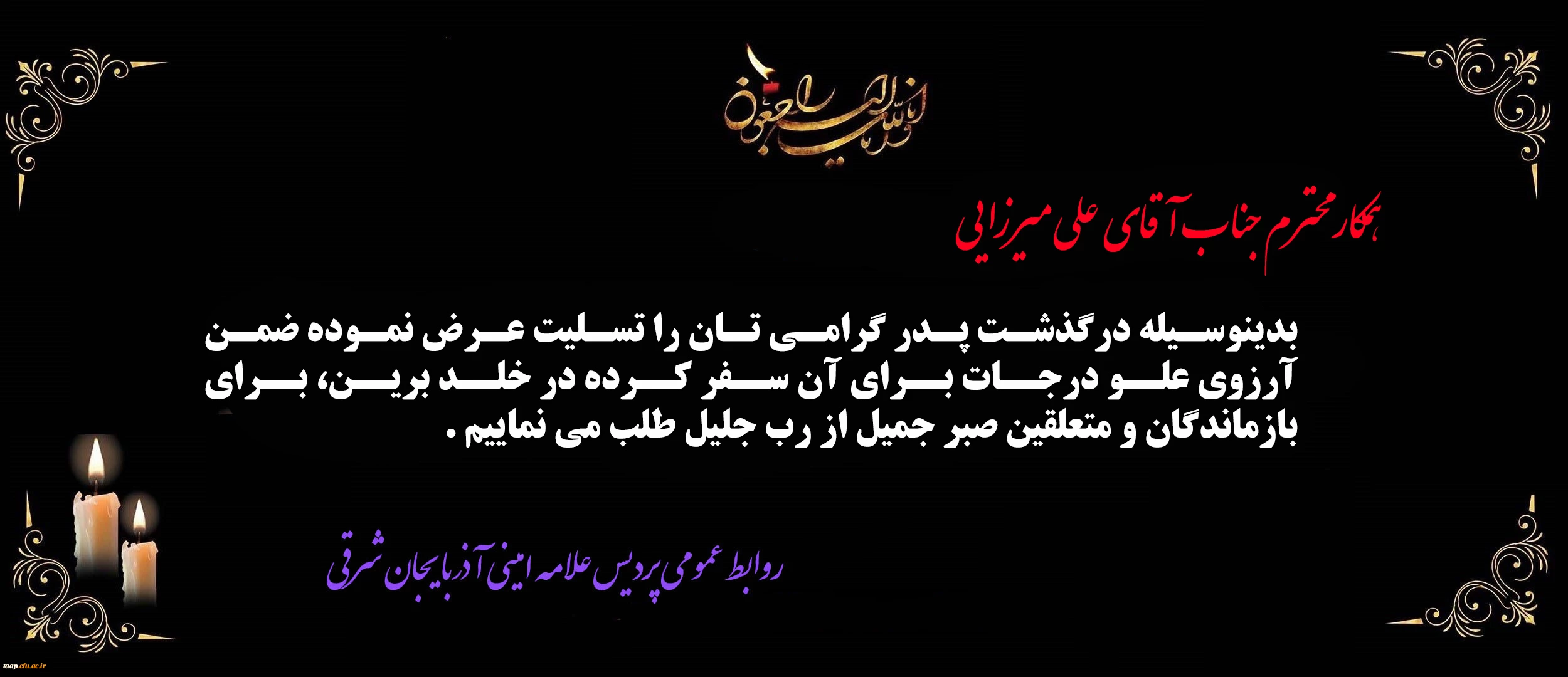 امتیاز دهید : پیام تسلیت به مناسبت درگذشت پدر گرامی جناب آقای علی میرزایی 2 جمعه 25 تیر 1400 ساعت 8:48