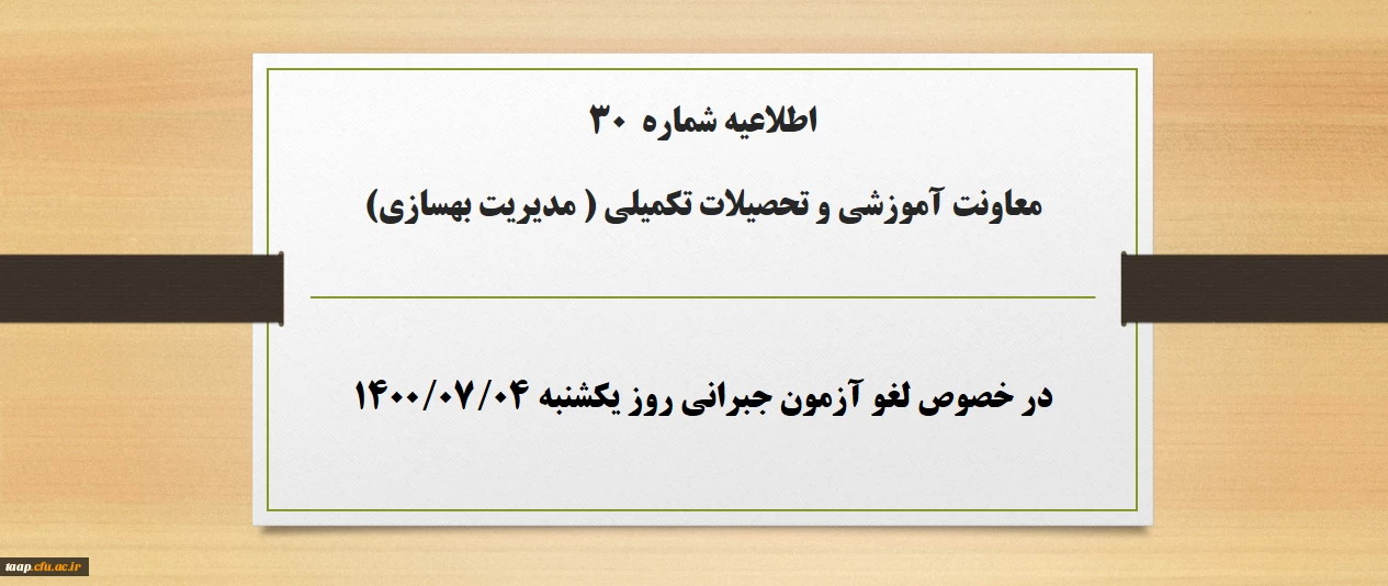 اطلاعیه شماره 30 معاونت آموزشی و تحصیلات تکمیلی ( مدیریت بهسازی) در خصوص لغو آزمون جبرانی روز یکشنبه ۴مهر۱۴۰۰ 2