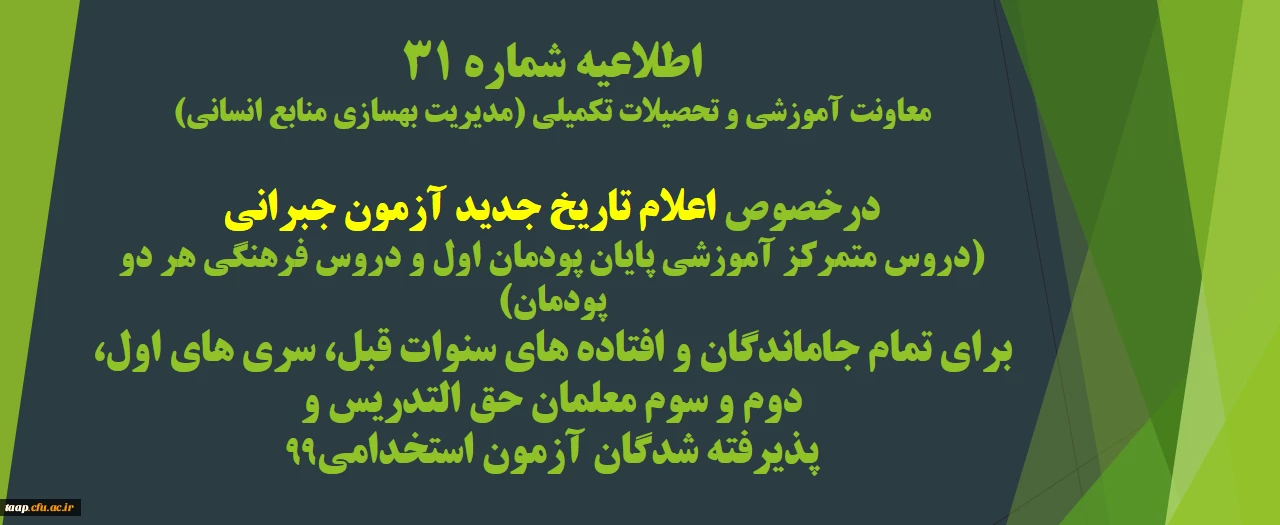 اطلاعیه شماره 31 معاونت آموزشی و تحصیلات تکمیلی (مدیریت بهسازی منابع انسانی) 2