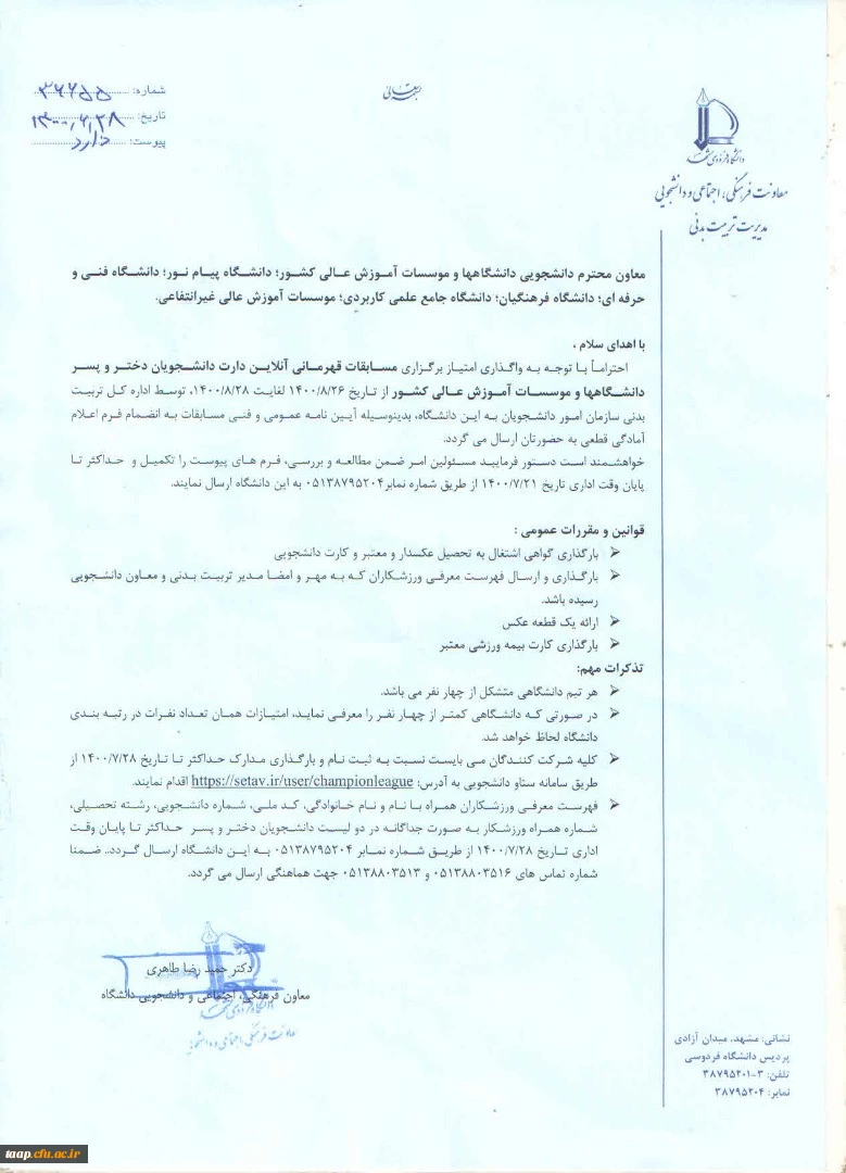 برگزاری مسابقات ورزش های قهرمانی آنلاین و مجازی دانشگاه ها و موسسات آموزش عالی سراسر کشور 5