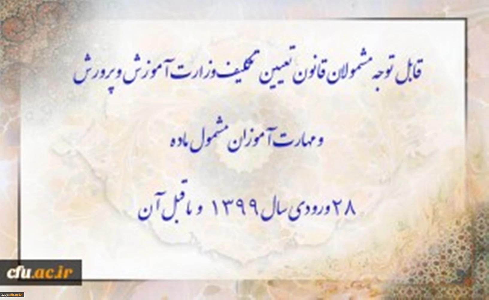 قابل توجه مشمولان قانون تعیین تکلیف وزارت آموزش و پرورش و مهارت آموزان مشمول ماده ٢٨ ورودی سال ١٣٩٩ و ماقبل آن 2
