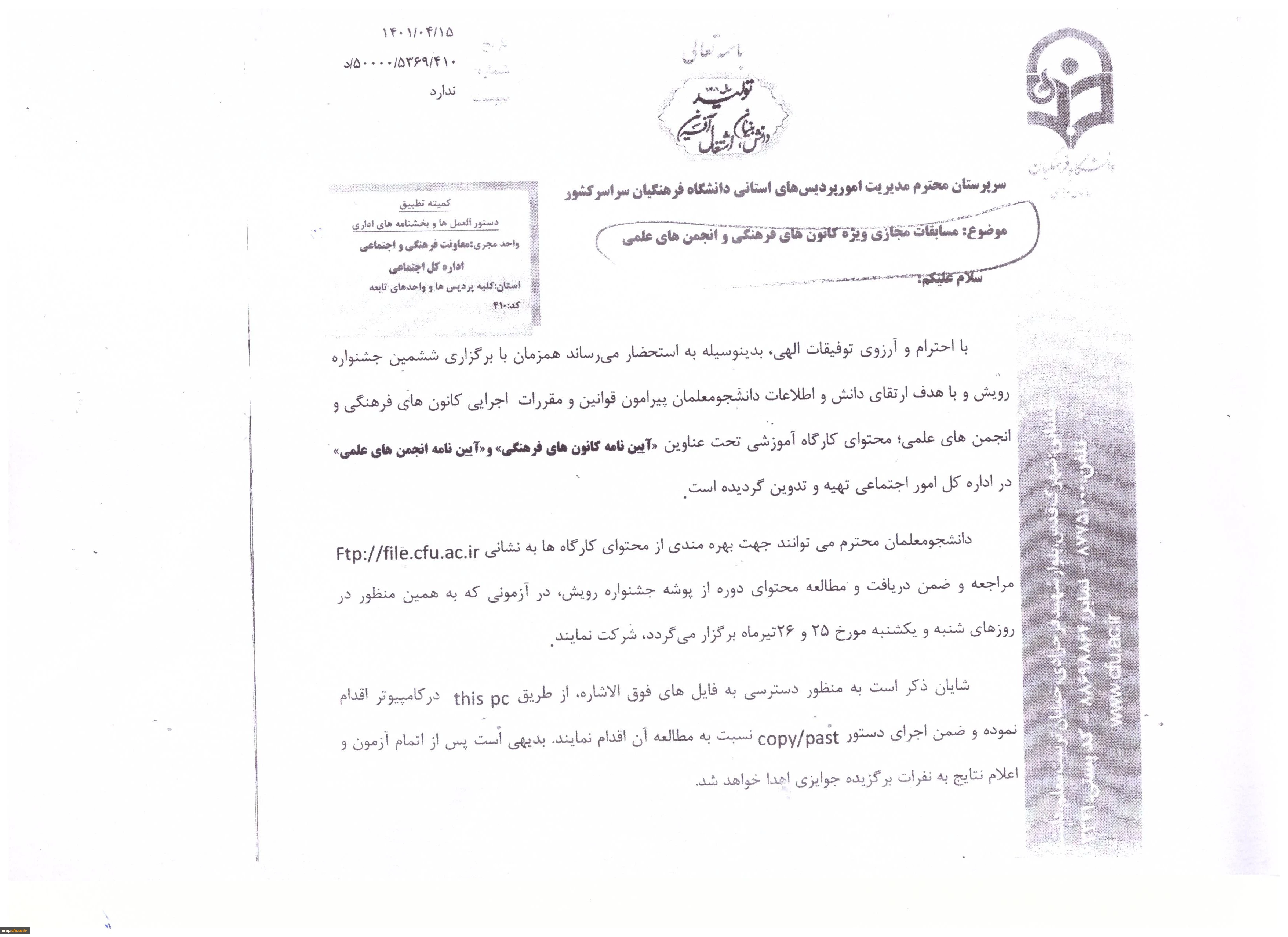 مسابقات مجازی ویژی کانون های فرهنگی و انجمن های علمی 2