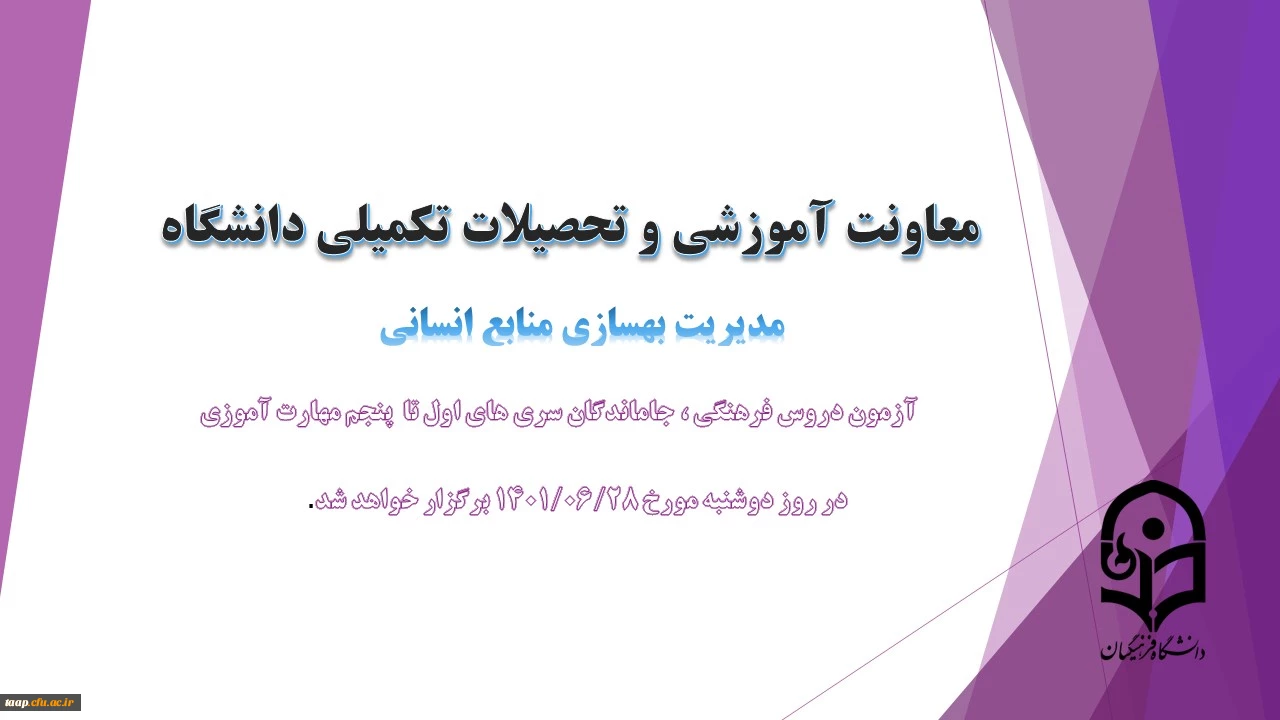 برگزاری آزمون دروس فرهنگی ، جاماندگان سری های اول تا پنجم مهارت آموزی 2