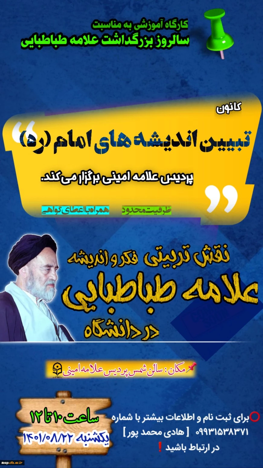 به همت کانون تبیین اندیشه های امام (ره) کارگاه آموزشی ، فیلسوف و اسلام شناس بزرگ ایرانی، علامه طباطبایی،برگزار گردید. 2