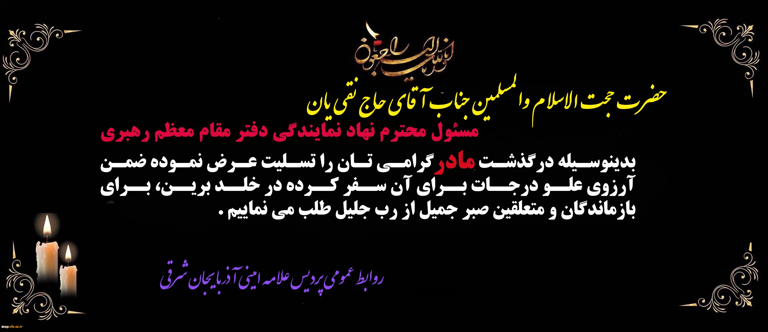 پیام تسلیت به مناسبت درگذشت مادر گرامی حجت الاسلام و المسلمین جناب آقای حاج نقی یان 2