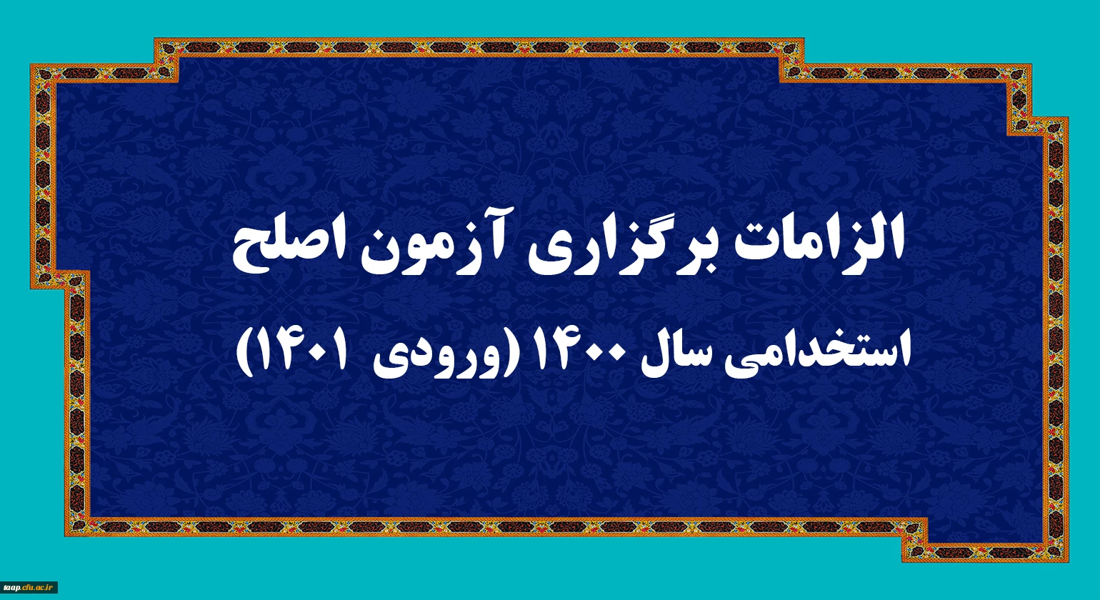امتیاز دهید : الزامات برگزاری آزمون اصلح استخدامی سال 1400 (ورودی 1401) 2 سهشنبه 2 اسفند 1401 ساعت 14:38