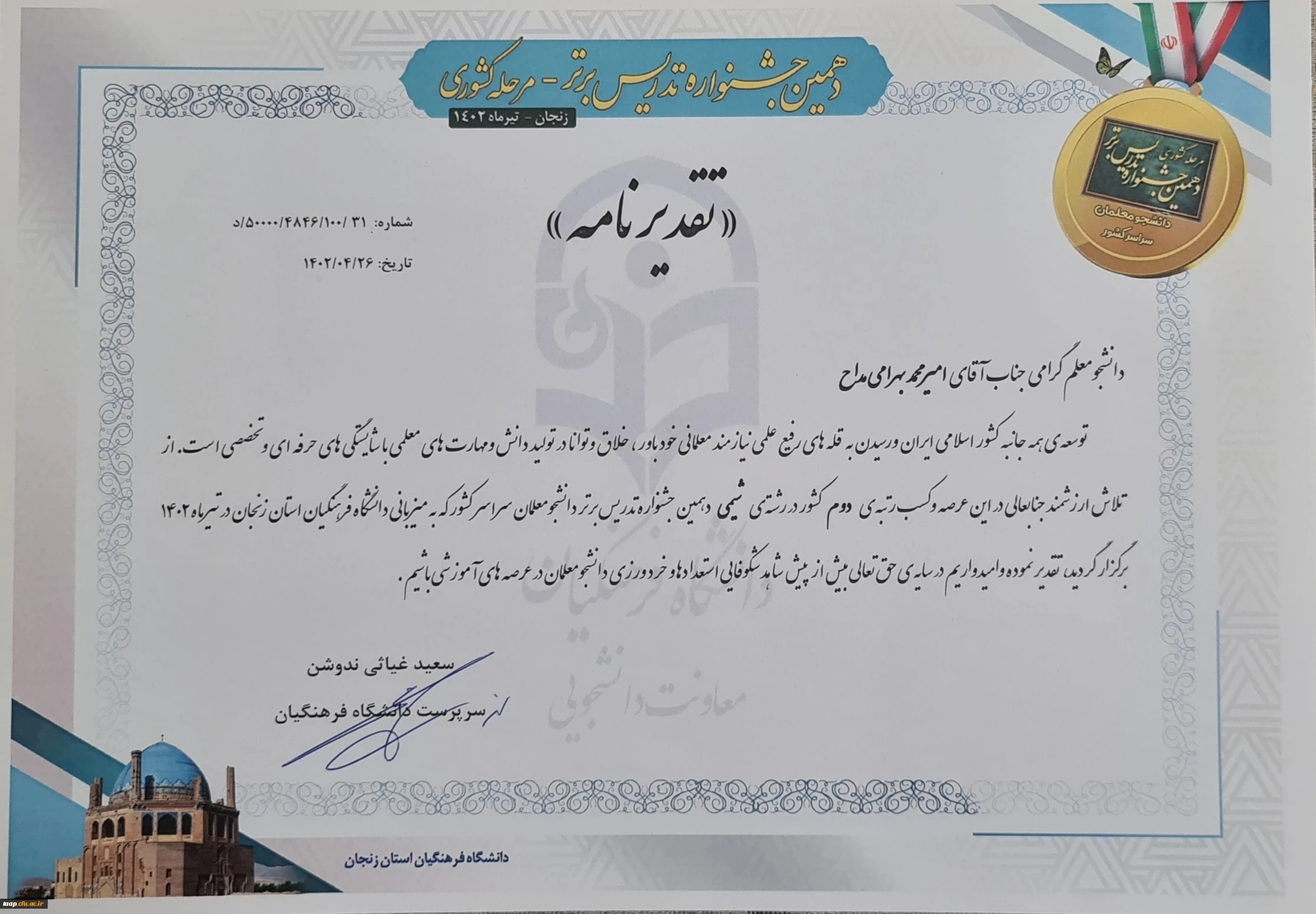 دانشجو معلم گرامی جناب آقای امیرمحمد بهرامی مداح 4