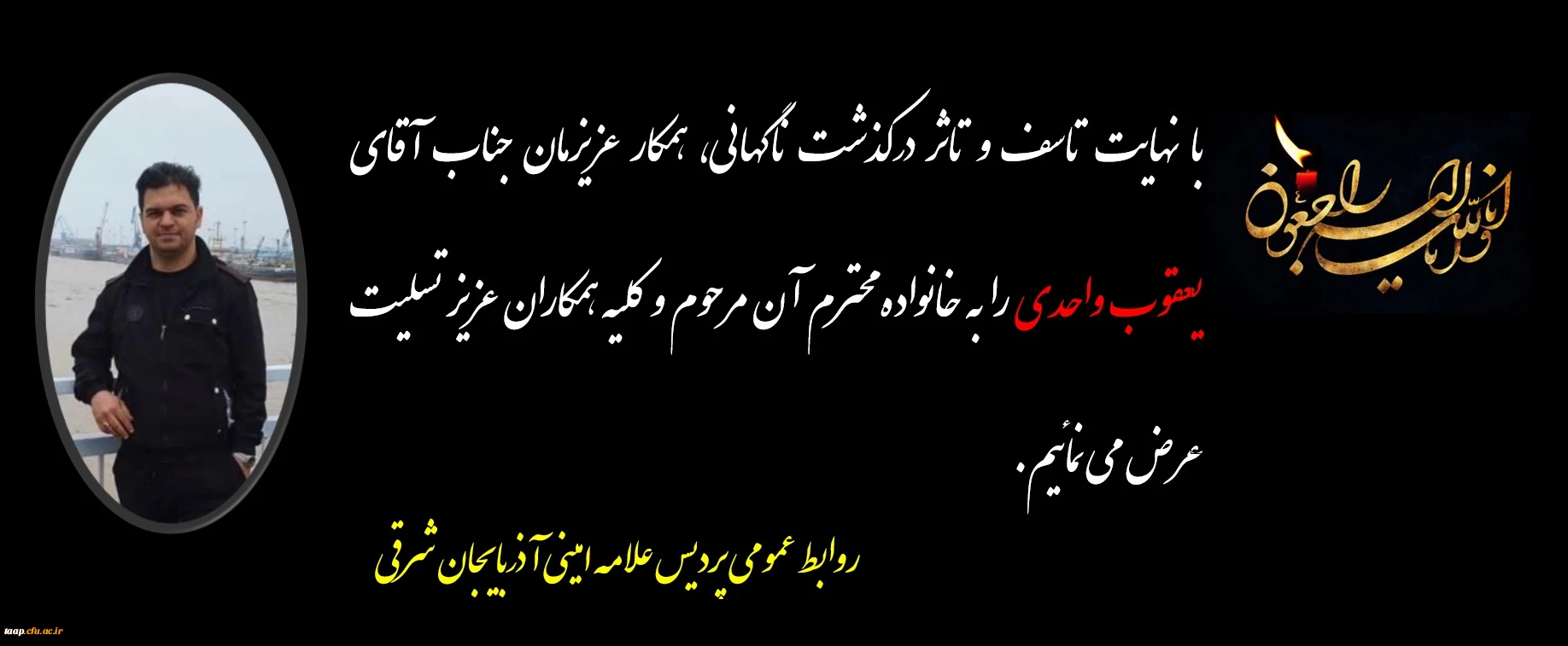 امتیاز دهید : پیام تسلیت به مناسبت درگذشت همکار گرامی جناب آقای یعقوب واحدی 3 یکشنبه 5 فروردین 1403 ساعت 5:14