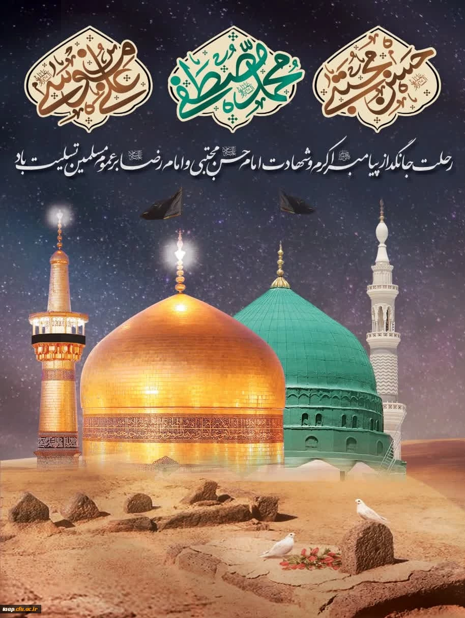 رحلت جانگداز پیامبر اکرم و شهادت امام حسن مجتبی و امام رضا (ع)بر عموم مسلمین تسلیت باد. 2
