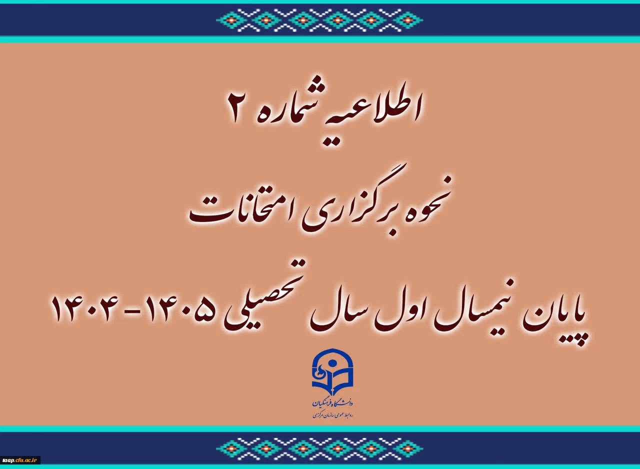 اطلاعیه شماره ۲ نحوه برگزاری امتحانات پایان نیمسال اول سال تحصیلی ۱۴۰۵-۱۴۰۴ 2
